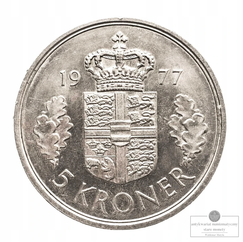 Dania, Królowa Małgorzata II, 5 koron 1977, Kopenhaga