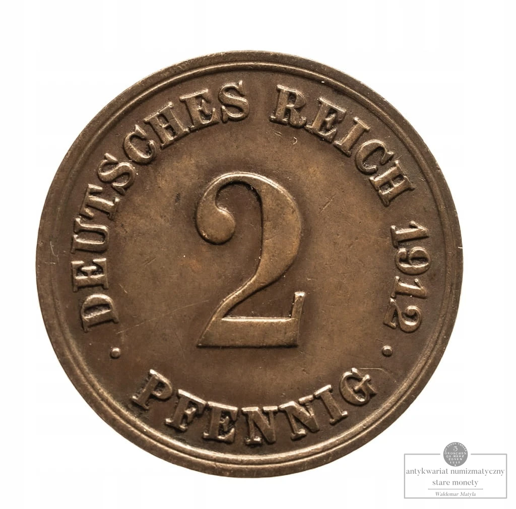 Niemcy, Prusy, Wilhelm II, 2 fenigi, 1912 E, Muldenhütten.