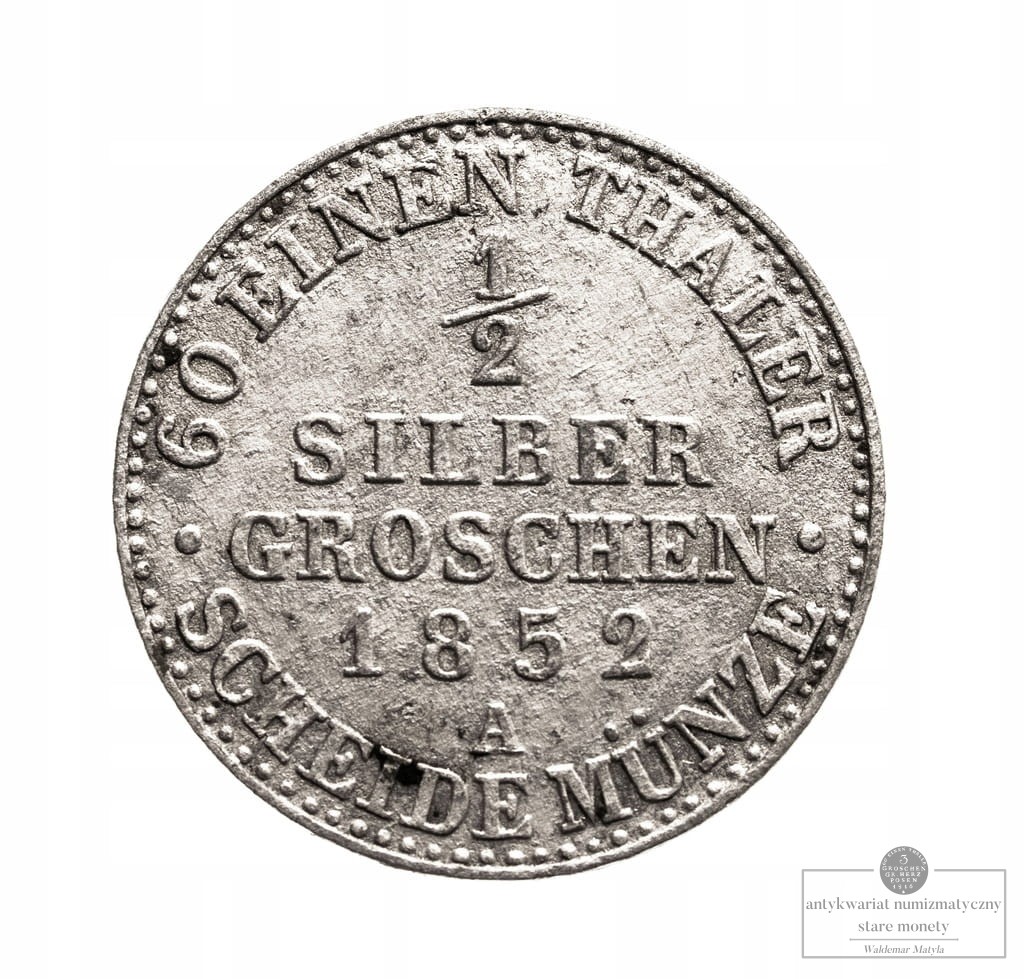 Prusy, Friedrich Wilhelm IV, 1/2 Grosza srebrnego 1852-A, Berlin
