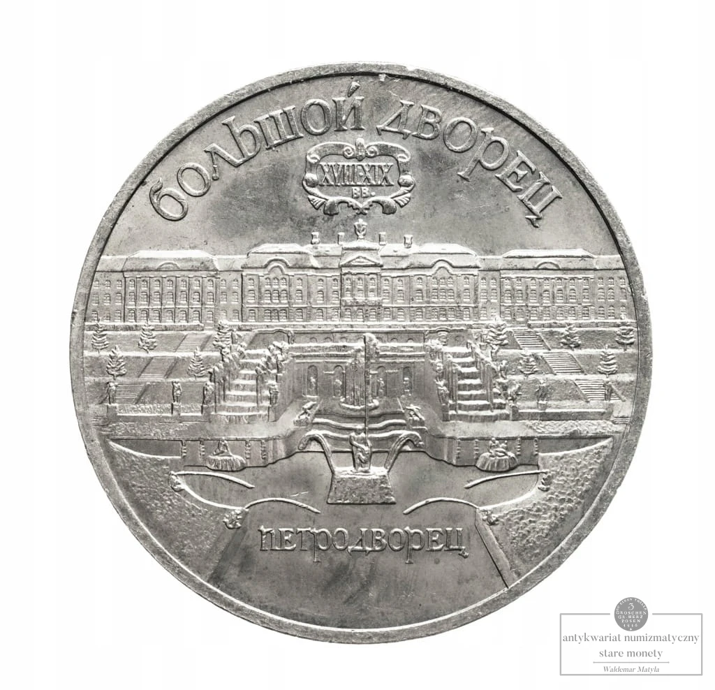 Rosja, ZSRR, 5 rubli, Wielki Pałac, Peterhof, 1990 rok.