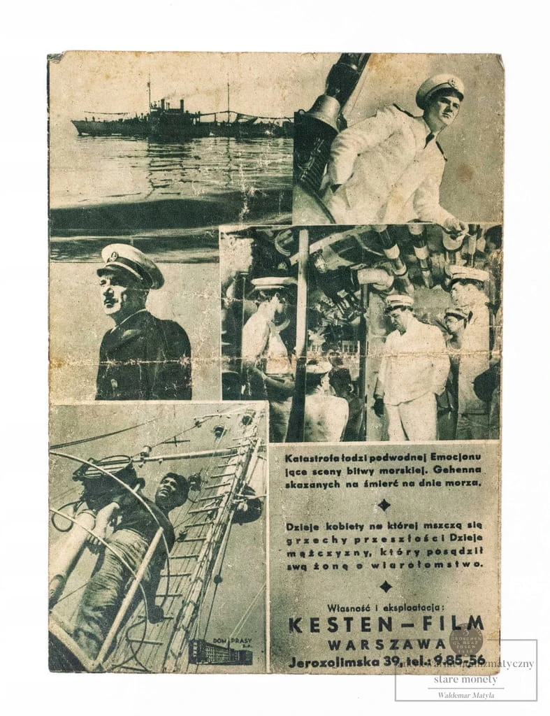 STARA REKLAMA - KINO, FILM KREW NA MORZU, WARSZAWA l. 30/40