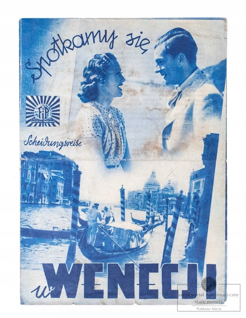STARA REKLAMA - KINO, FILM SPOTKAMY SIĘ W WENECJI, WARSZAWA / KRAKÓW OKUPACJA l. 40
