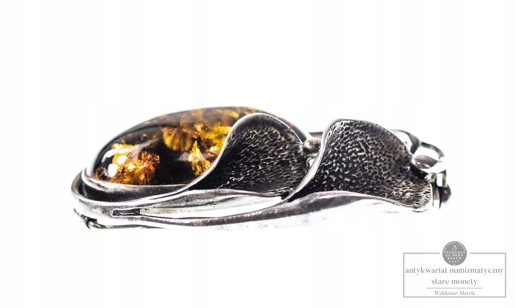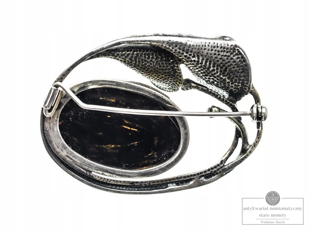 STARA SREBRNA BROSZKA Z KAMIENIEM