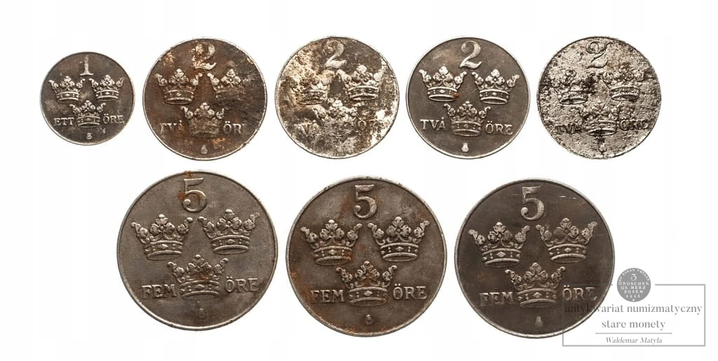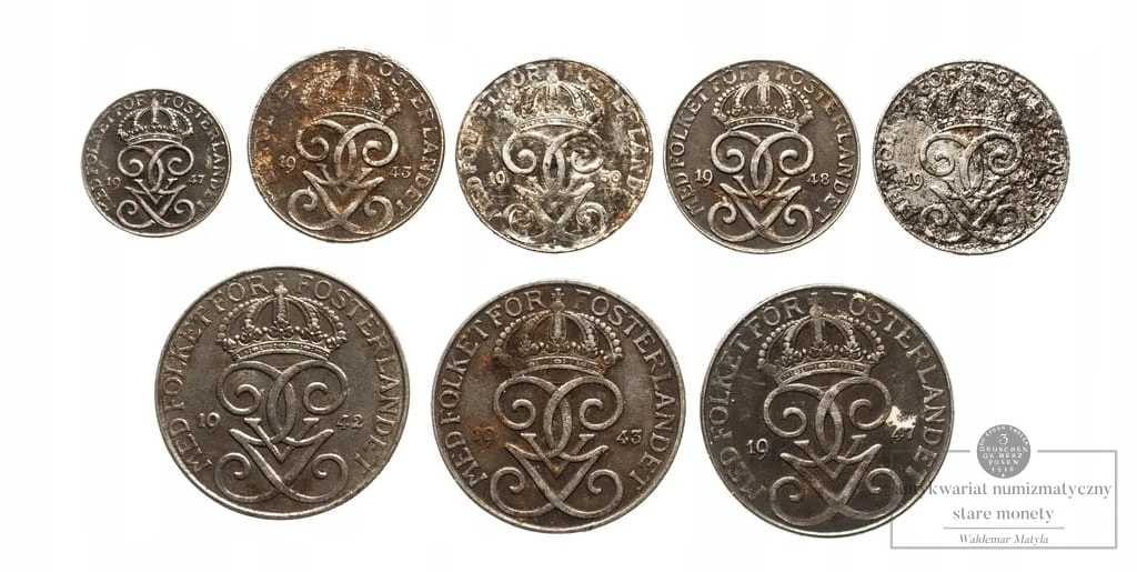 Szwecja, zestaw monet obiegowych 1942-1950 (8 szt.)