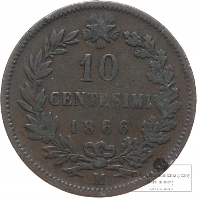 WŁOCHY 10 CENTESIMI 1866 M Vittorio Emanuele II