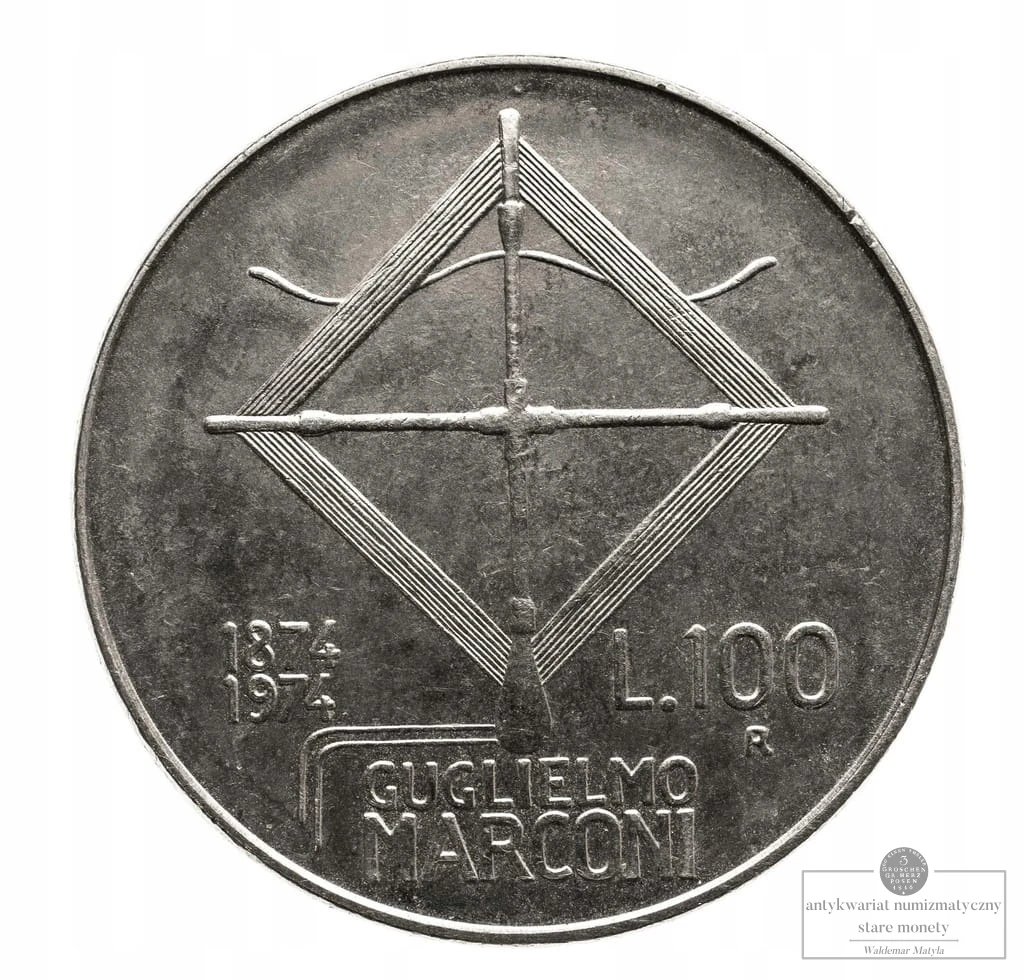 Włochy, 100 Lirów 1974 rok Marconi st.2+
