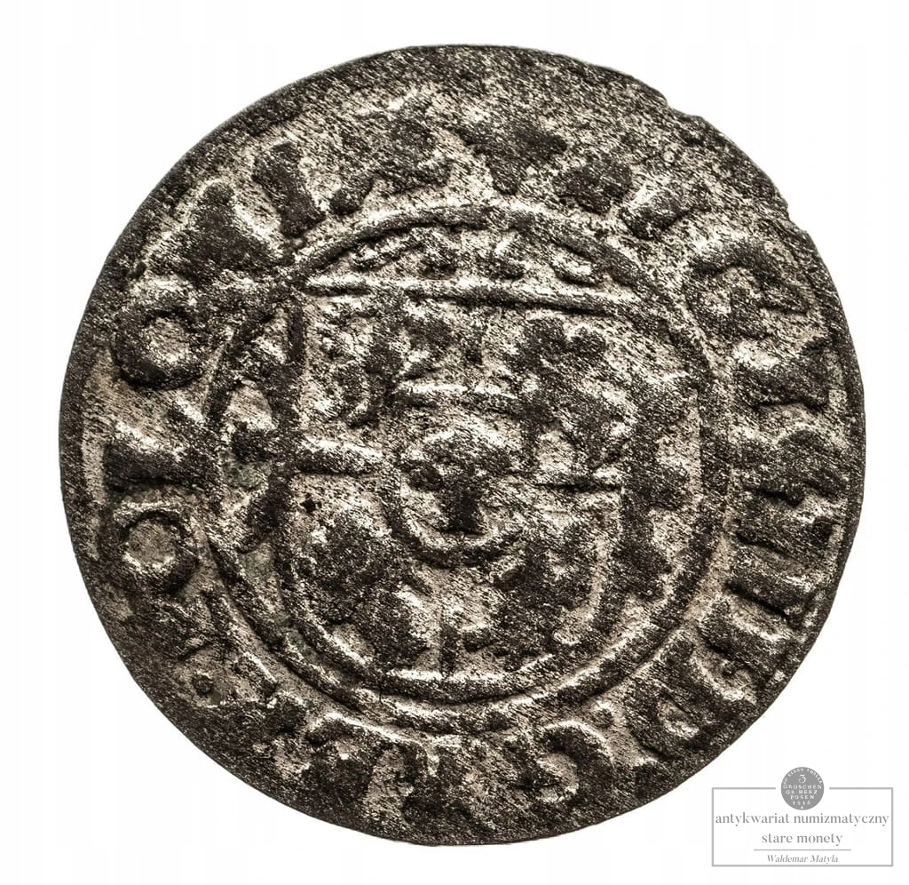 Bardzo ładnie zachowany, centryczny szeląg. Dużo srebrzenia.